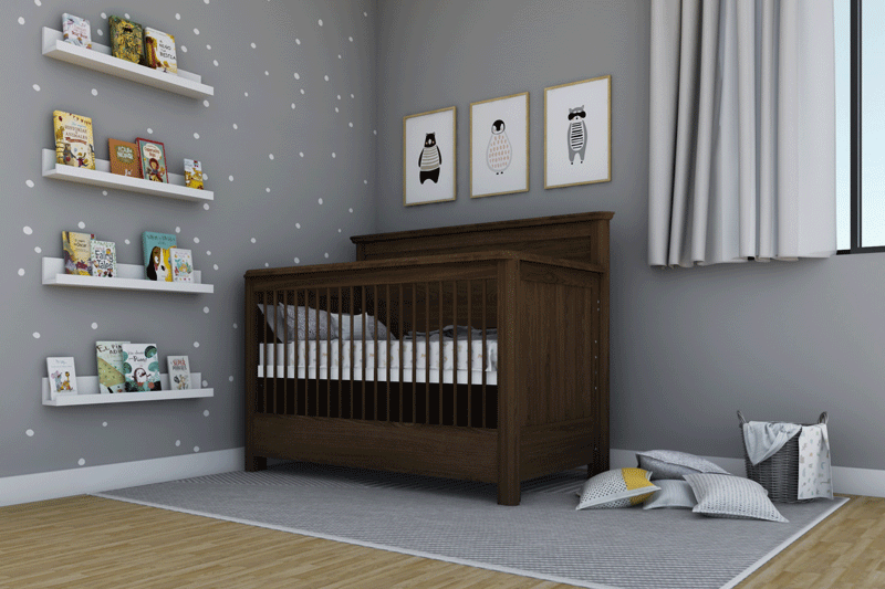 Colecho: El colchón se coloca en el nivel superior para tener un fácil acceso, también puedes remover el barandal/piecera ajustando el colchón al nivel de tu cama para que sea un colecho durante los primeros meses de tu bebé.
