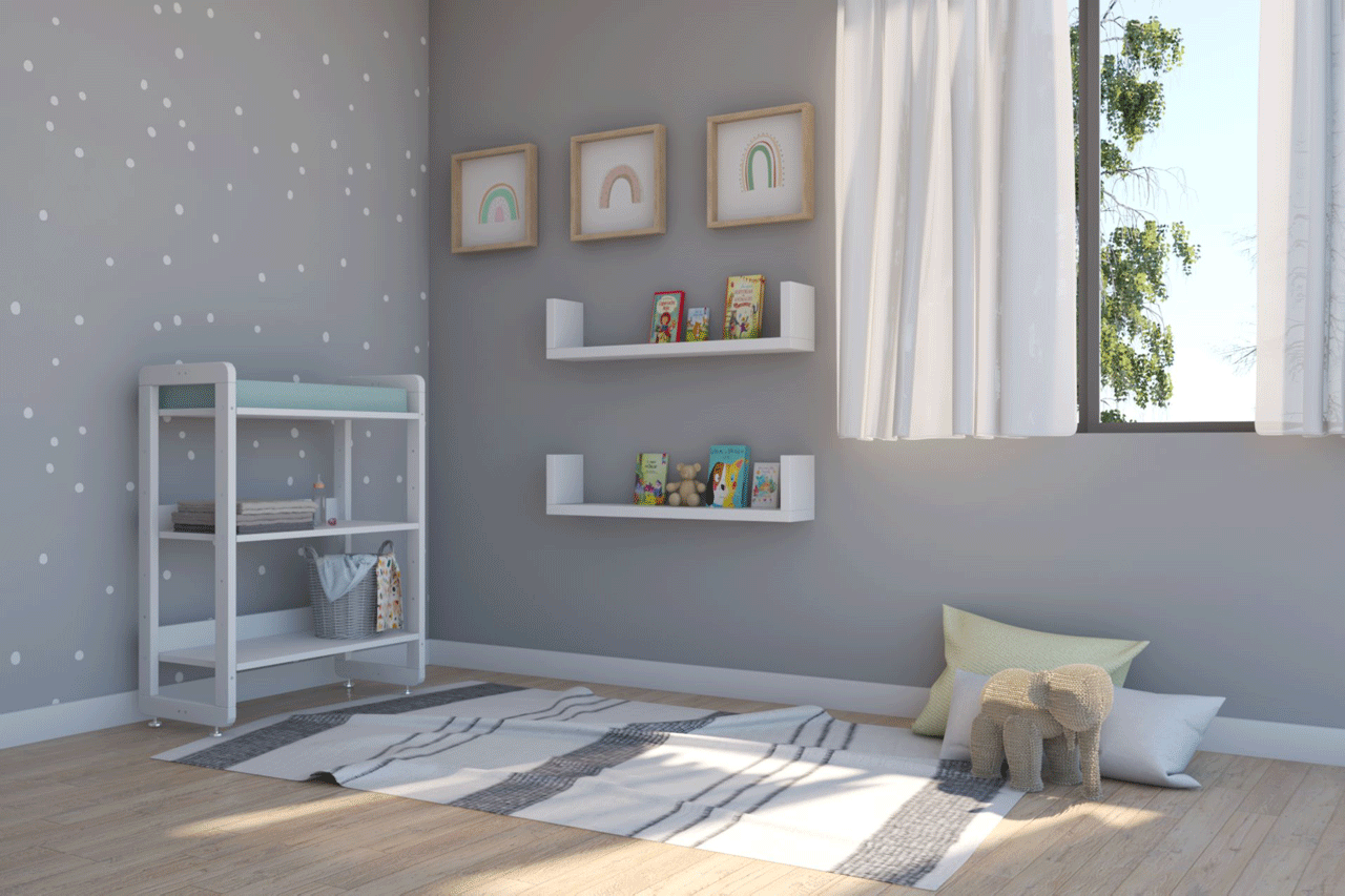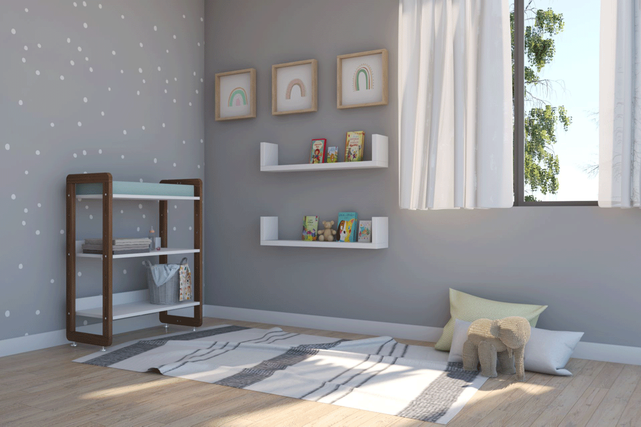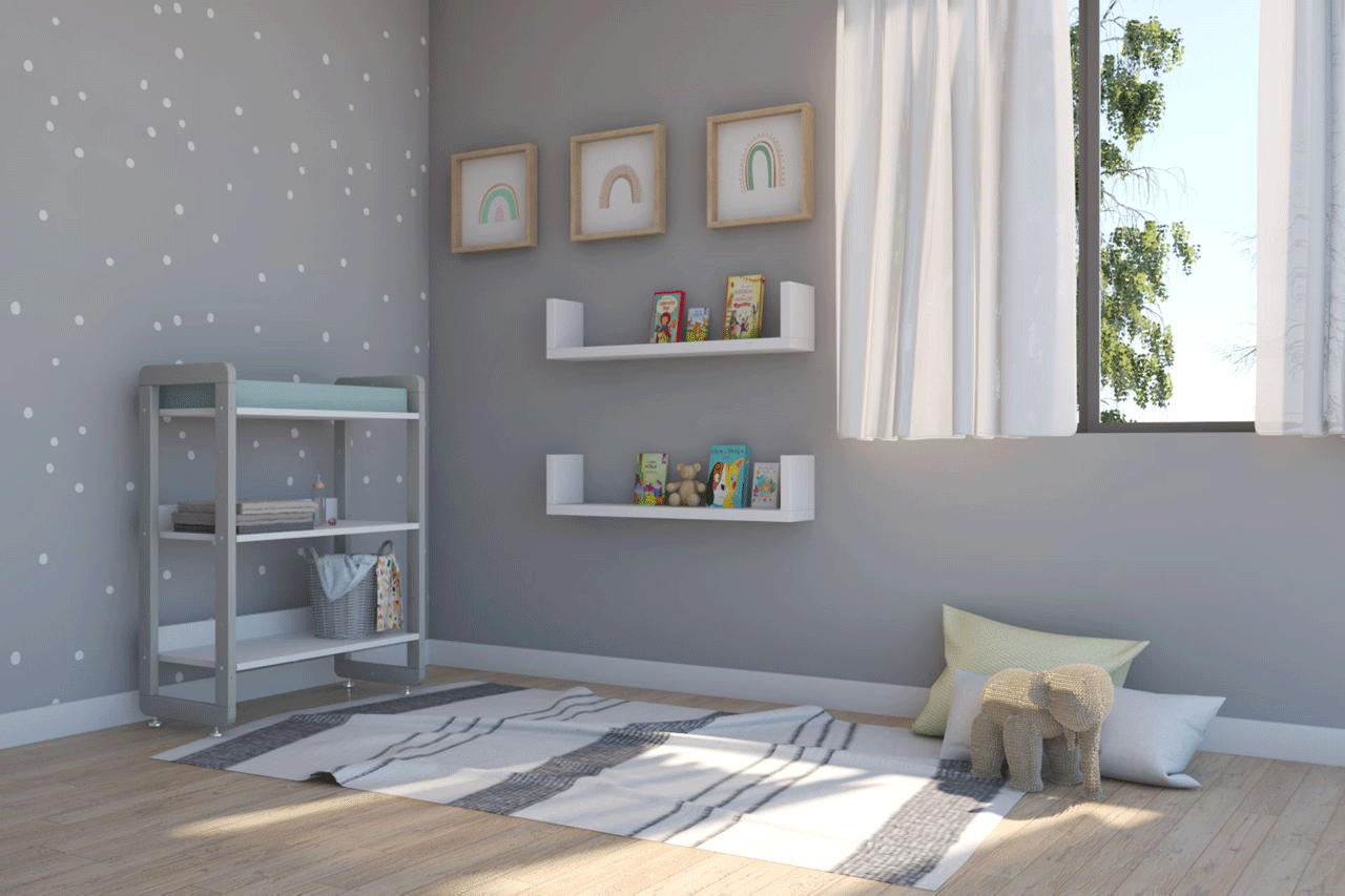 Cambiador: coloca los tres entrepaños en tres niveles diferentes, de acuerdo a tu preferencia. En el entrepaño más alto se colocará el colchón cambiador para tu bebé.