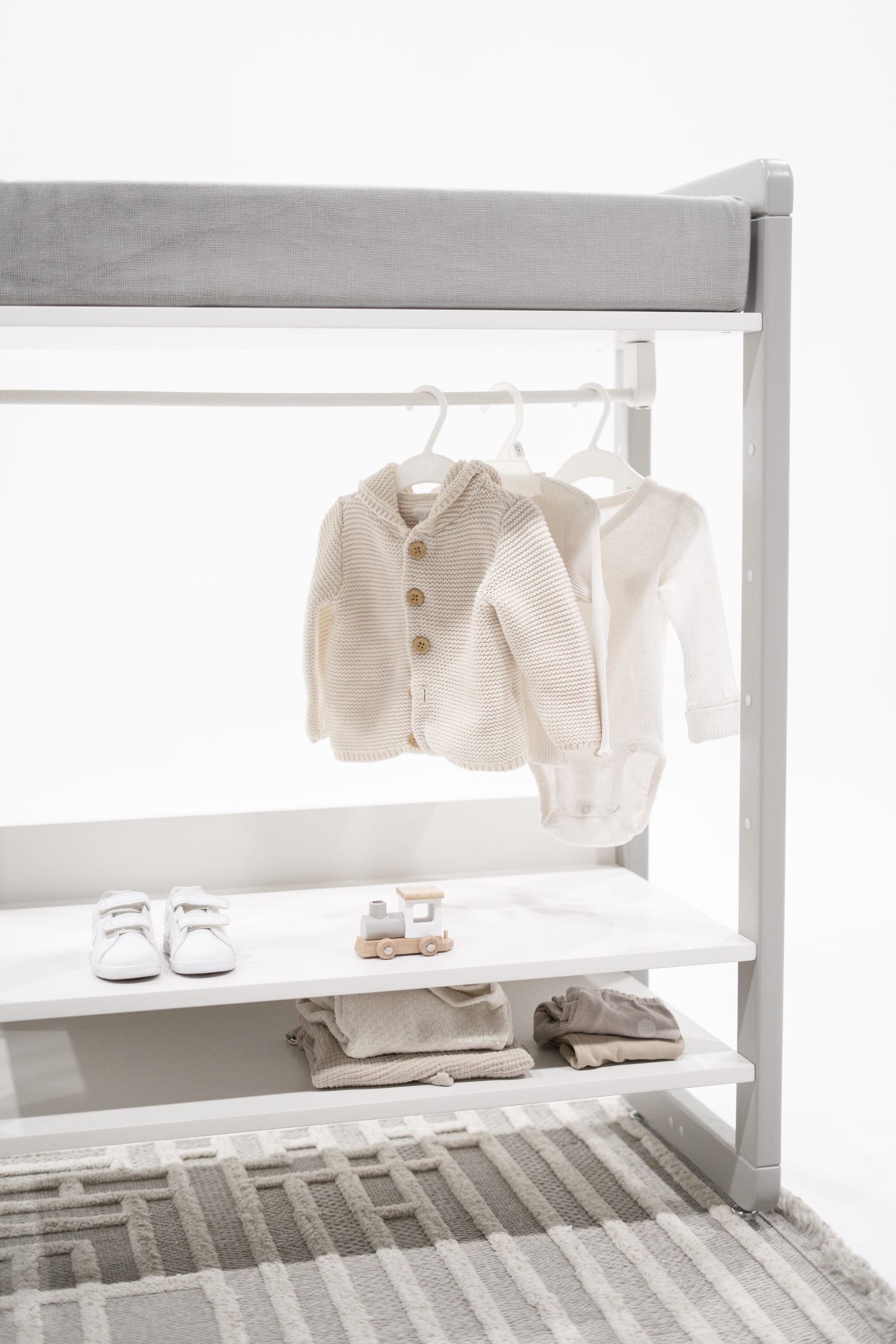 Mueble Cambiador con entrepaños móviles y diseño Montessori para desarrollar la independencia de tu pequeño.